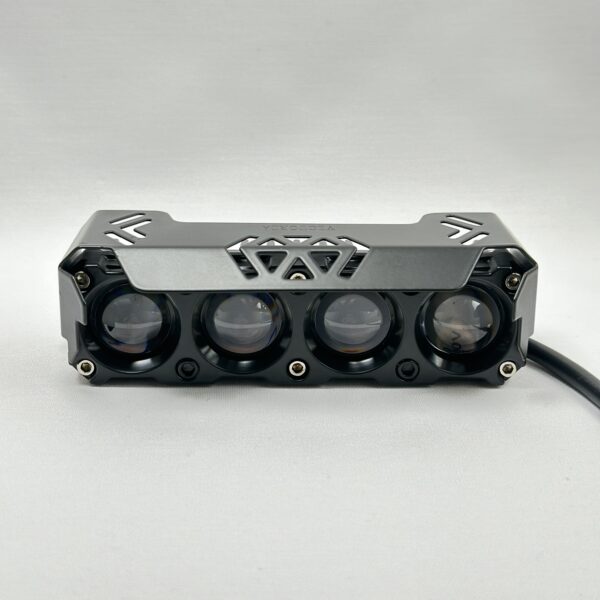 - برای نور بالا 2 ال ای دی بطور همزمان با نور پایین روشن میگردد و 3 الی 4 متر به پرتاب نور اضافه میکند